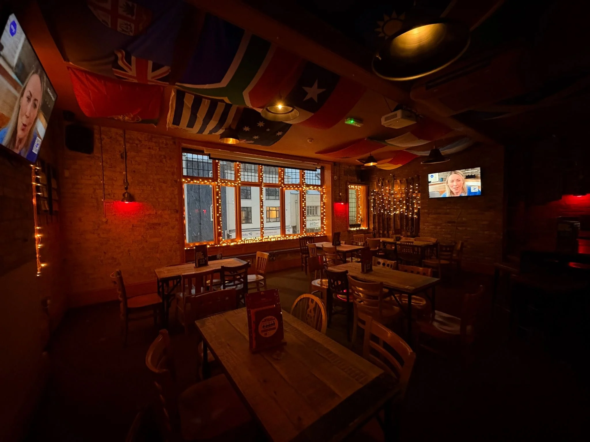 15 tv screens and 2 projectors showing all the sport